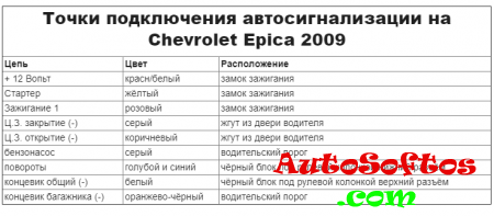 Точки подключения автосигнализации на Chevrolet Epica 2009