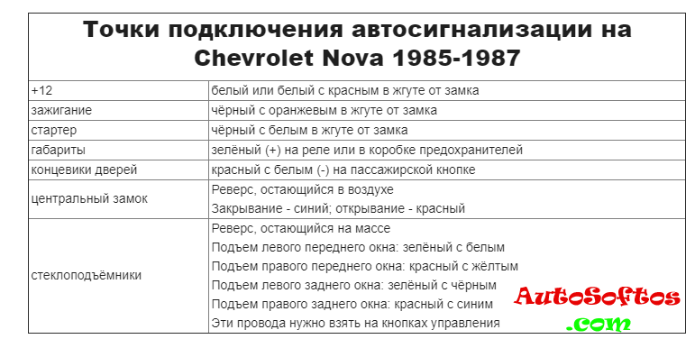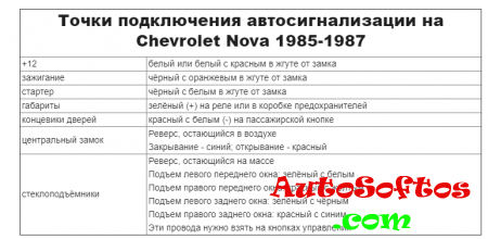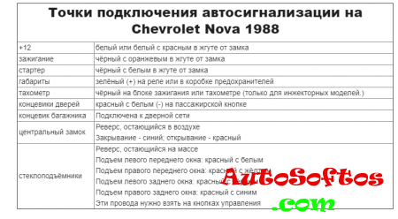Точки подключения автосигнализации на Chevrolet Nova 1985-1987. Точки подключения автосигнализации на Chevrolet Nova 1988