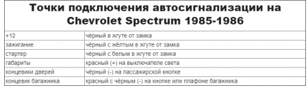 Точки подключения автосигнализации на Chevrolet Spectrum 1985-1986