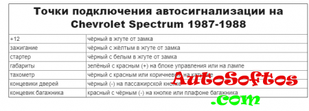 Точки подключения автосигнализации на Chevrolet Spectrum 1987-1988