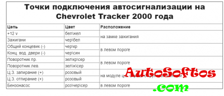Точки подключения автосигнализации на Chevrolet Tracker 2000 года