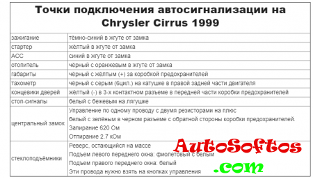 Точки подключения автосигнализации на Chrysler Cirrus 1999