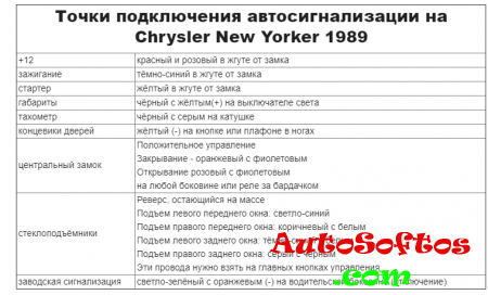 Точки подключения автосигнализации на Chrysler New Yorker 1990