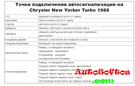 Точки подключения автосигнализации на Chrysler New Yorker 1988