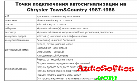 Точки подключения автосигнализации на Chrysler Town&Country 1987-1988