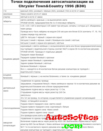 Точки подключения автосигнализации на Chrysler Town&Country 1996 (ВЭН)