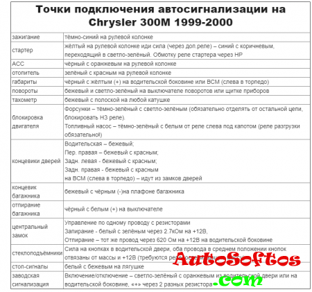 Точки подключения автосигнализации на Chrysler 300M 1999-2000