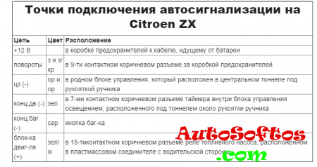 Точки подключения автосигнализации на Citroen ZX.