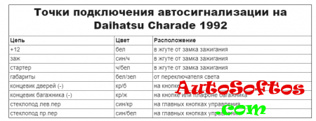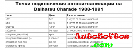 Точки подключения автосигнализации на Daihatsu Charade 1988-1991 Точки подключения автосигнализации на Daihatsu Charade 1992