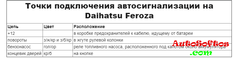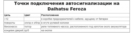 Точки подключения автосигнализации на Daihatsu Feroza