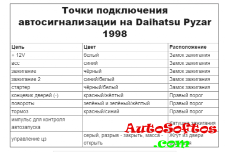 Точки подключения автосигнализации на Daihatsu Pyzar 1998