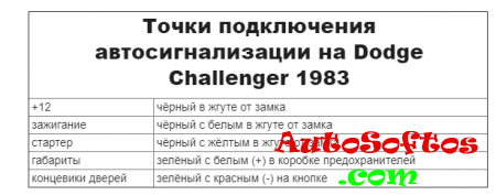 Точки подключения автосигнализации на Dodge Challenger 1983