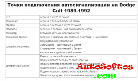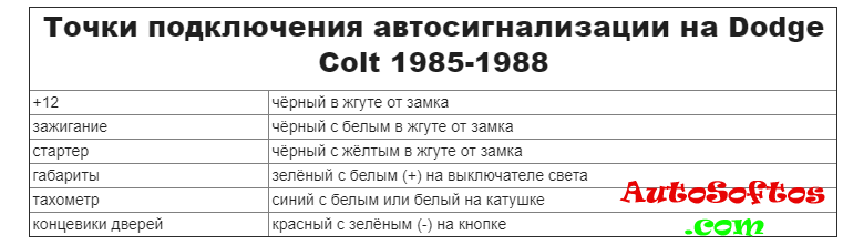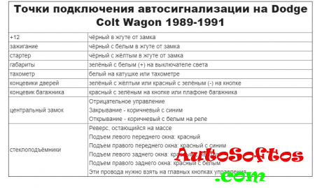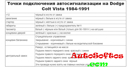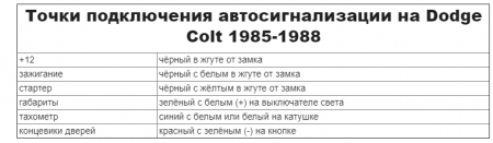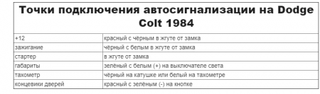 Точки подключения автосигнализации на Dodge Colt Wagon 1989-1991