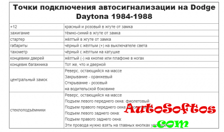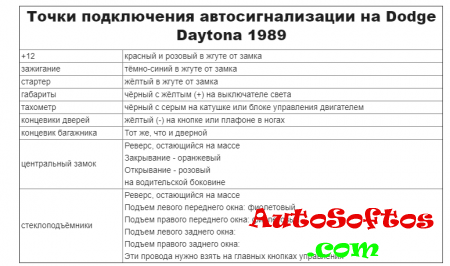 Точки подключения автосигнализации на Dodge Daytona 1989