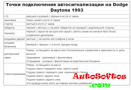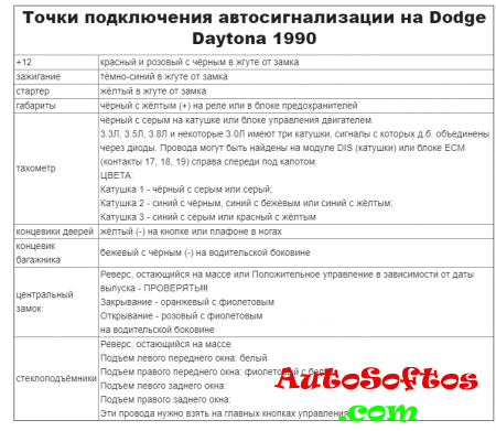 Точки подключения автосигнализации на Dodge Daytona 1993