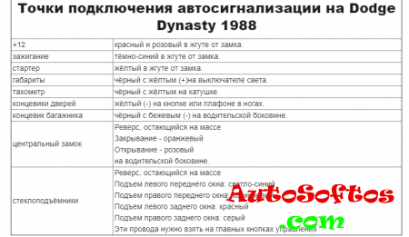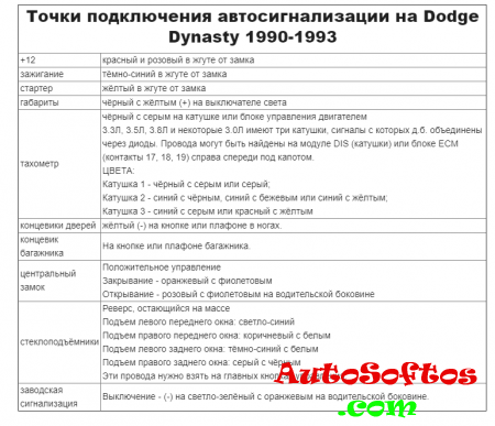 ![]() Точки подключения автосигнализации на Dodge Dynasty 1988 Точки подключения автосигнализации на Dodge Dynasty 1990-1993
