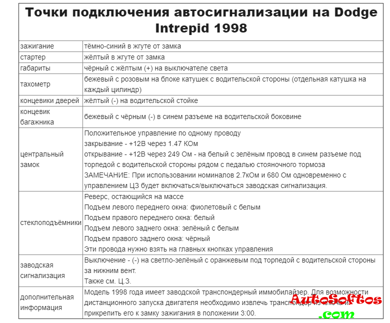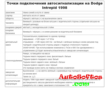 Точки подключения автосигнализации на Dodge Intrepid 1998
