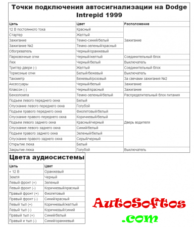 Точки подключения автосигнализации на Dodge Intrepid 1999