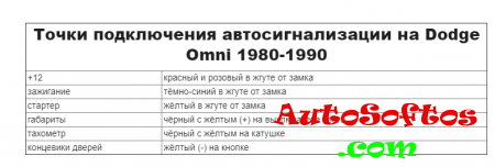 Точки подключения автосигнализации на Dodge Omni 1980-1990