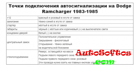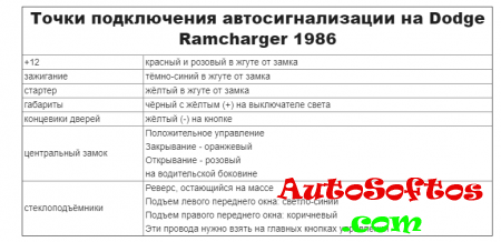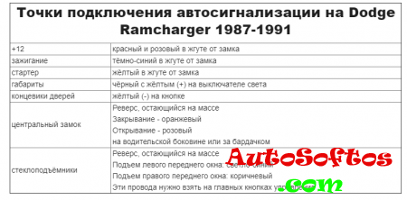 Точки подключения автосигнализации на Dodge Ramcharger 1987-1991