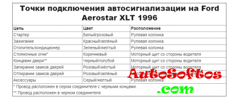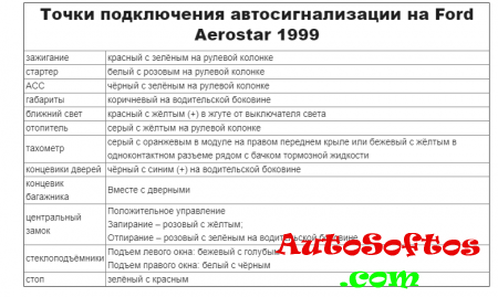 Точки подключения автосигнализации на Ford Aerostar 1999