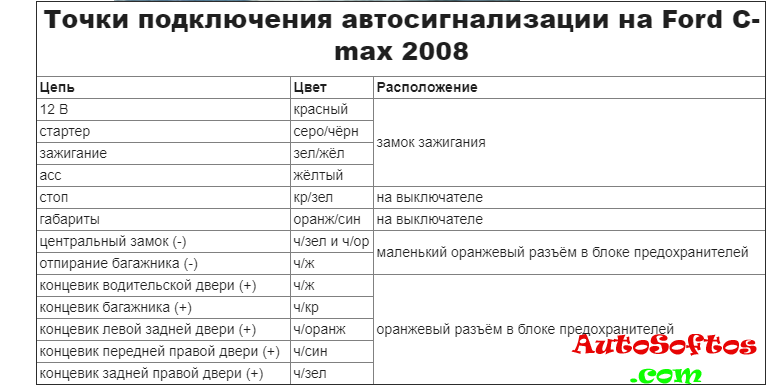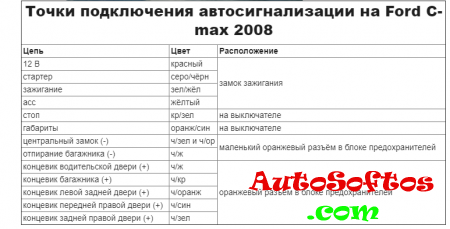Точки подключения автосигнализации на Ford C-max 2008