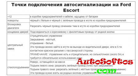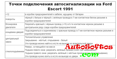 Точки подключения автосигнализации на Ford Escort