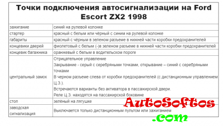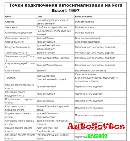Точки подключения автосигнализации на Ford Escort Точки подключения автосигнализации на Ford Escort 1991 Точки подключения автосигнализации на Ford Escort 1997 Точки подключения автосигнализации на Ford Escort ZX2 1998