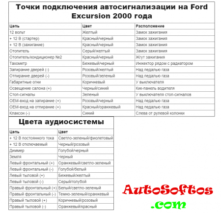 Точки подключения автосигнализации на Ford Excursion 2000 года