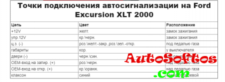 Точки подключения автосигнализации на Ford Excursion XLT 2000