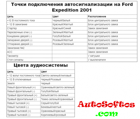 Точки подключения автосигнализации на Ford Expedition 2001