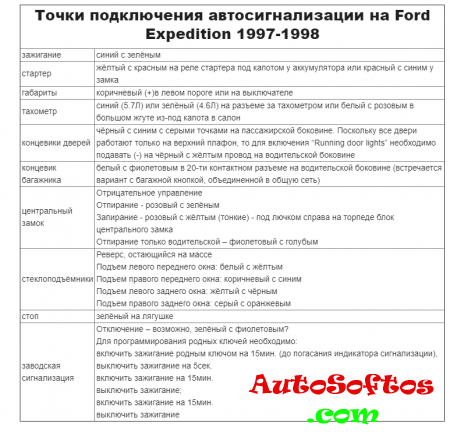 Точки подключения автосигнализации на Ford Expedition 1997-1998