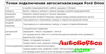 Точки подключения автосигнализации Ford Orion