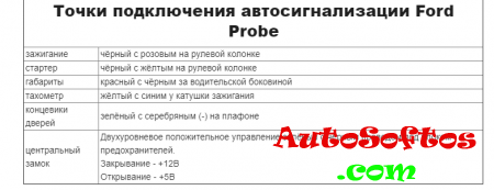 Точки подключения автосигнализации Ford Probe