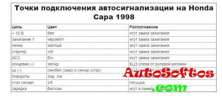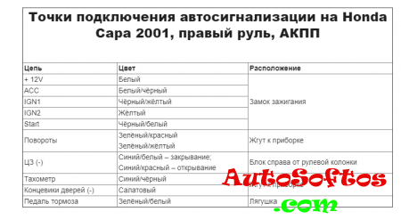 Точки подключения автосигнализации на Honda Capa 2001, правый руль, АКПП