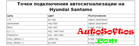Точки подключения автосигнализации на Hyundai Santamo.