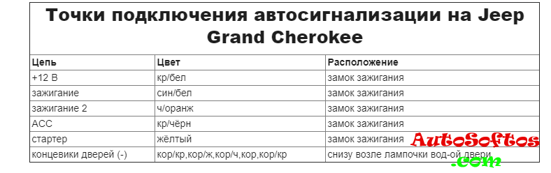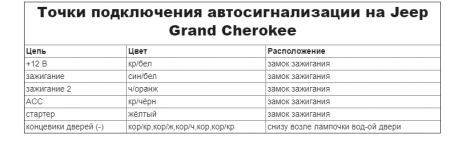 Точки подключения автосигнализации на Jeep Grand Cherokee