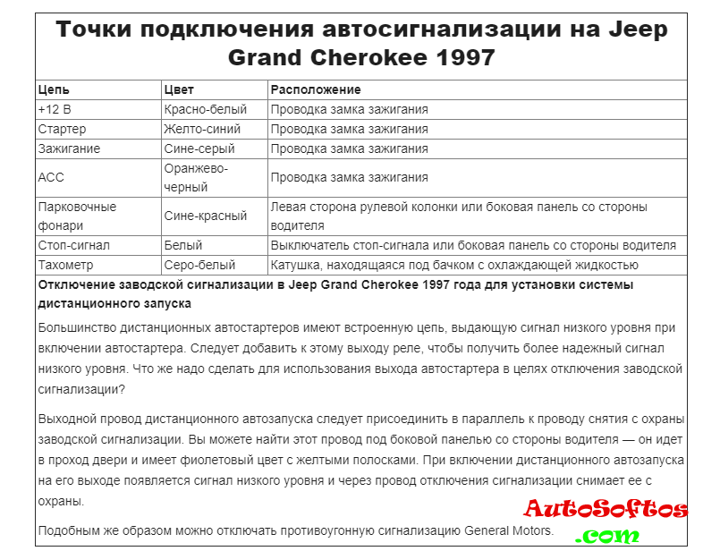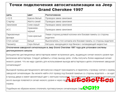 Точки подключения автосигнализации на Jeep Grand Cherokee 1997