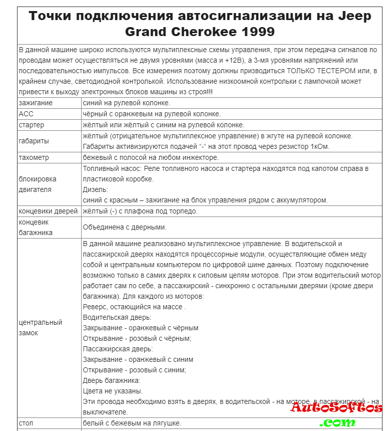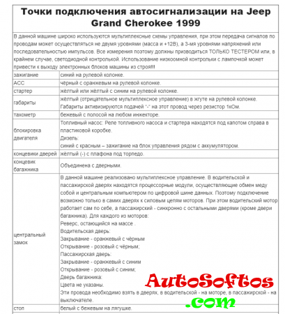 Точки подключения автосигнализации на Jeep Grand Cherokee 1999