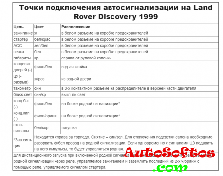Точки подключения автосигнализации на Land Rover Discovery 1999