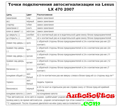 Точки подключения автосигнализации на Lexus LX 470