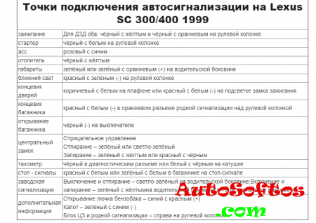 Точки подключения автосигнализации на Lexus SC 300/400 1999.