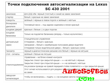 Точки подключения автосигнализации на Lexus SC 300/400 1999. Точки подключения автосигнализации на Lexus SC 430 2001