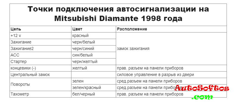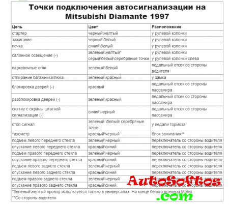 Точки подключения автосигнализации на Mitsubishi Diamante 2001
