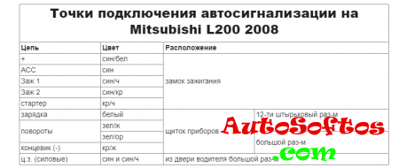 Точки подключения автосигнализации на Mitsubishi L200, 2004 год, европеец, механика, турбодизель
