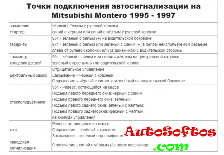 Точки подключения автосигнализации на Mitsubishi Montero 1995 - 1997