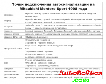 Точки подключения автосигнализации на Mitsubishi Montero Sport 1998 года