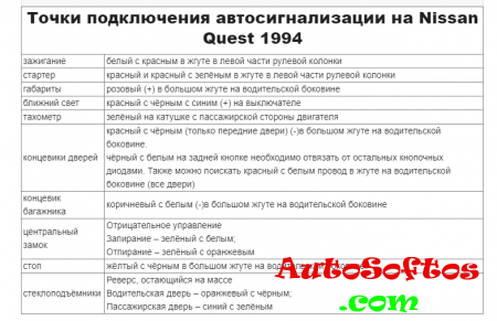 Точки подключения автосигнализации на Nissan Quest 1994