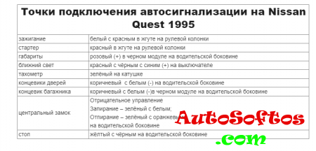 Точки подключения автосигнализации на Nissan Quest 1995