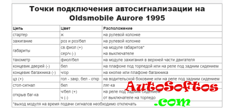 Точки подключения автосигнализации на Oldsmobile Aurore 1995